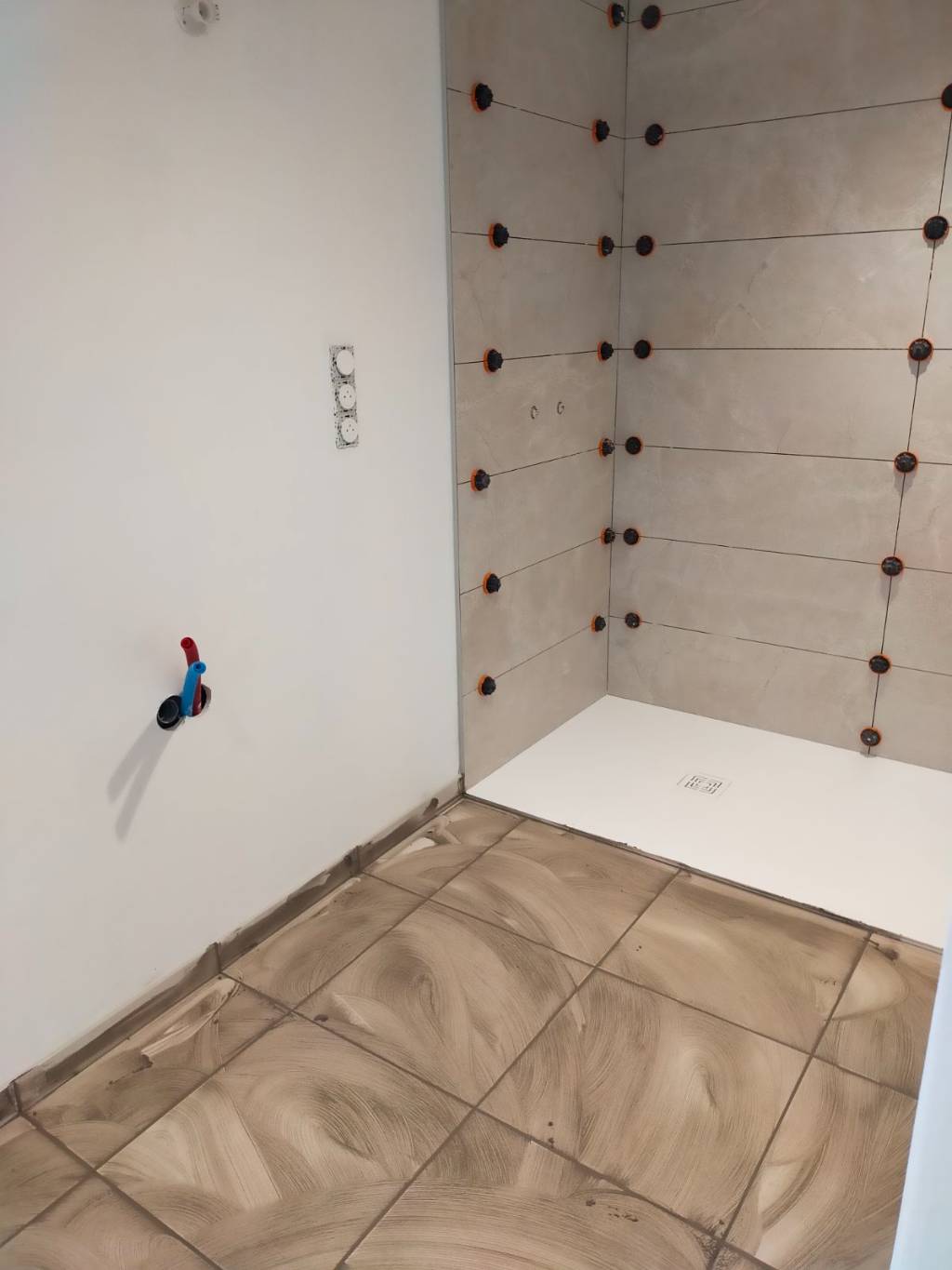 - Réalisations des arrivée d'eau froide et d'eau chaude pour la douche et le meuble vasque et d'évacuation des eaux.